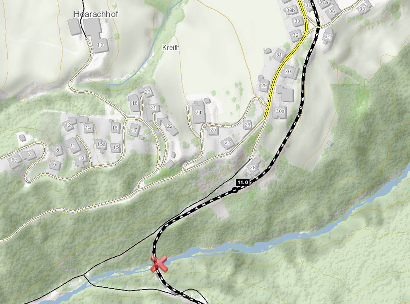 Am 11.04.2019 um ca. 14:30 Uhr wurde unterhalb der sogenannten „Kreither Brücke“ entlang der Bahnstrecke der Stubaitalbahn südlich des Ortsgebiets von 6162 Kreith (Gemeinde Mutters) eine unbekannte männliche Leiche aufgefunden.