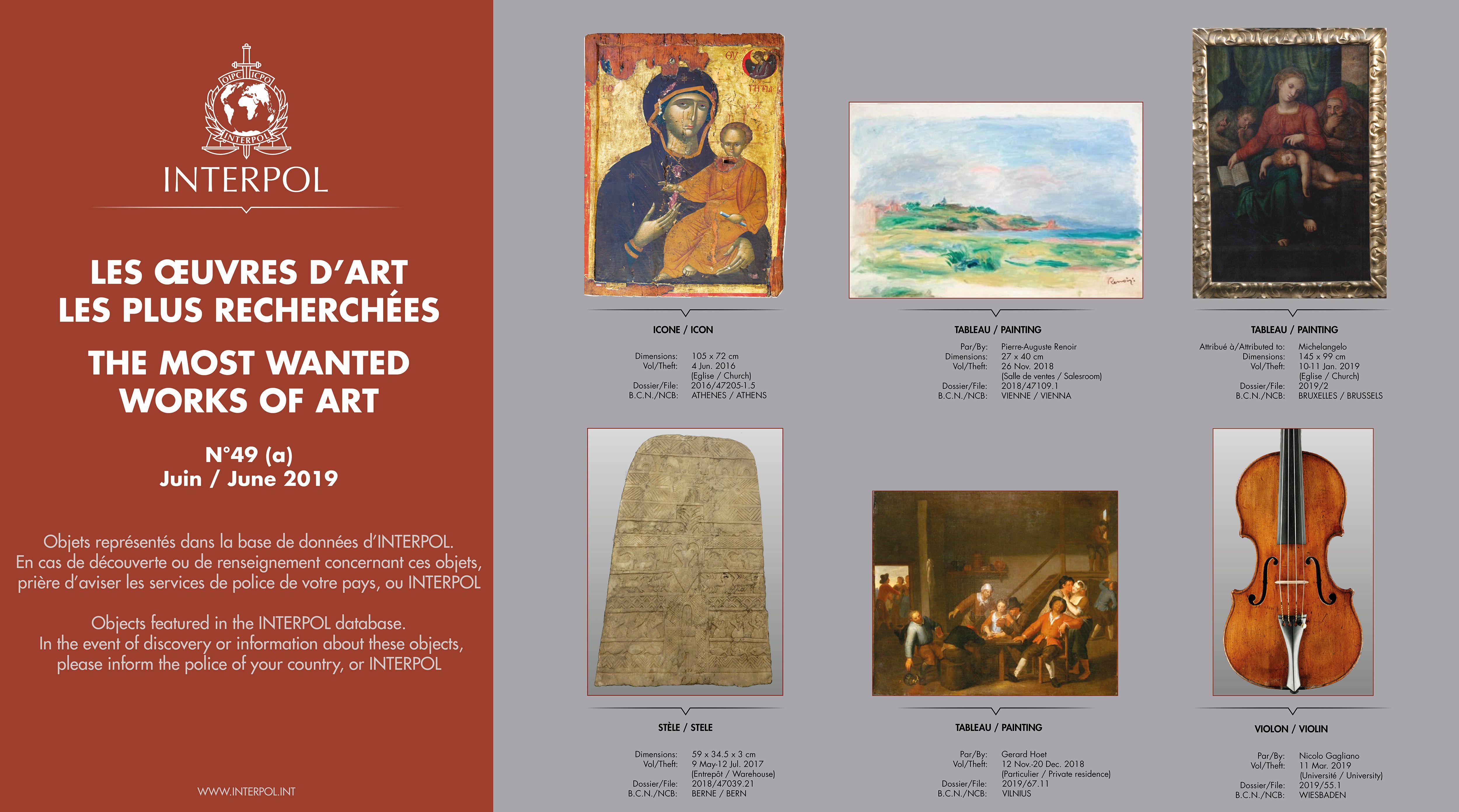 Most Wanted Works of Art Zurück zu: Startseite Fahndung Most Wanted Works of Art Interpol Poster Juni 2019 BeschreibungInterpol Poster Juni 2019 Termine Samstag, 21. März 2026 Wien Recruitingday on Tour Samstag, 28. März 2026 Wien Kinderpolizei Aufnahmen Fun4Kids 2026 Samstag, 11. April 2026 Wien Meet and Greet mit Polizeischülern Donnerstag, 23. April 2026 Wien Girl's Day Donnerstag, 23. April 2026 Tirol Hommage 2026 zu den Terminen
