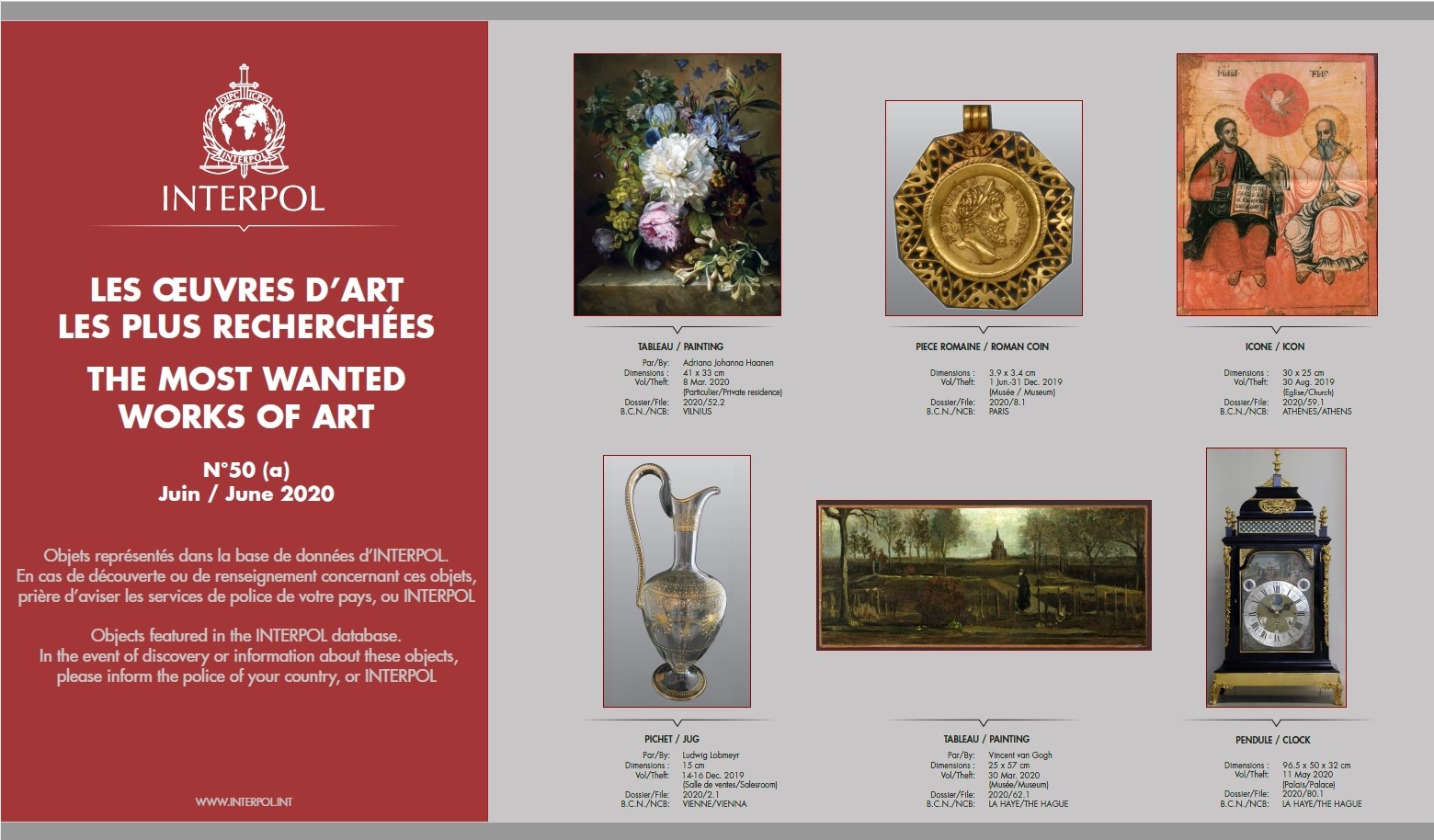 Most Wanted Works of Art Zurück zu: Startseite Fahndung Most Wanted Works of Art Interpol Poster Juni 2020 BeschreibungInterpol Poster Juni 2020 Termine Samstag, 21. März 2026 Wien Recruitingday on Tour Samstag, 28. März 2026 Wien Kinderpolizei Aufnahmen Fun4Kids 2026 Samstag, 11. April 2026 Wien Meet and Greet mit Polizeischülern Donnerstag, 23. April 2026 Wien Girl's Day Donnerstag, 23. April 2026 Tirol Hommage 2026 zu den Terminen