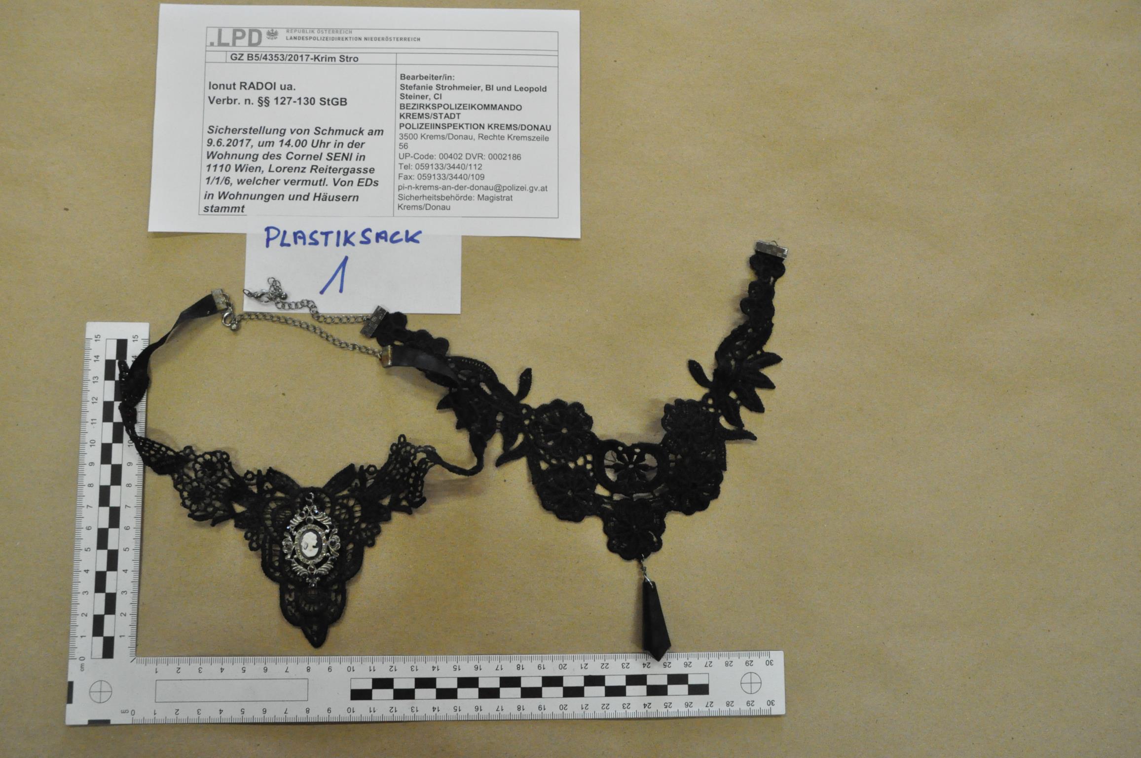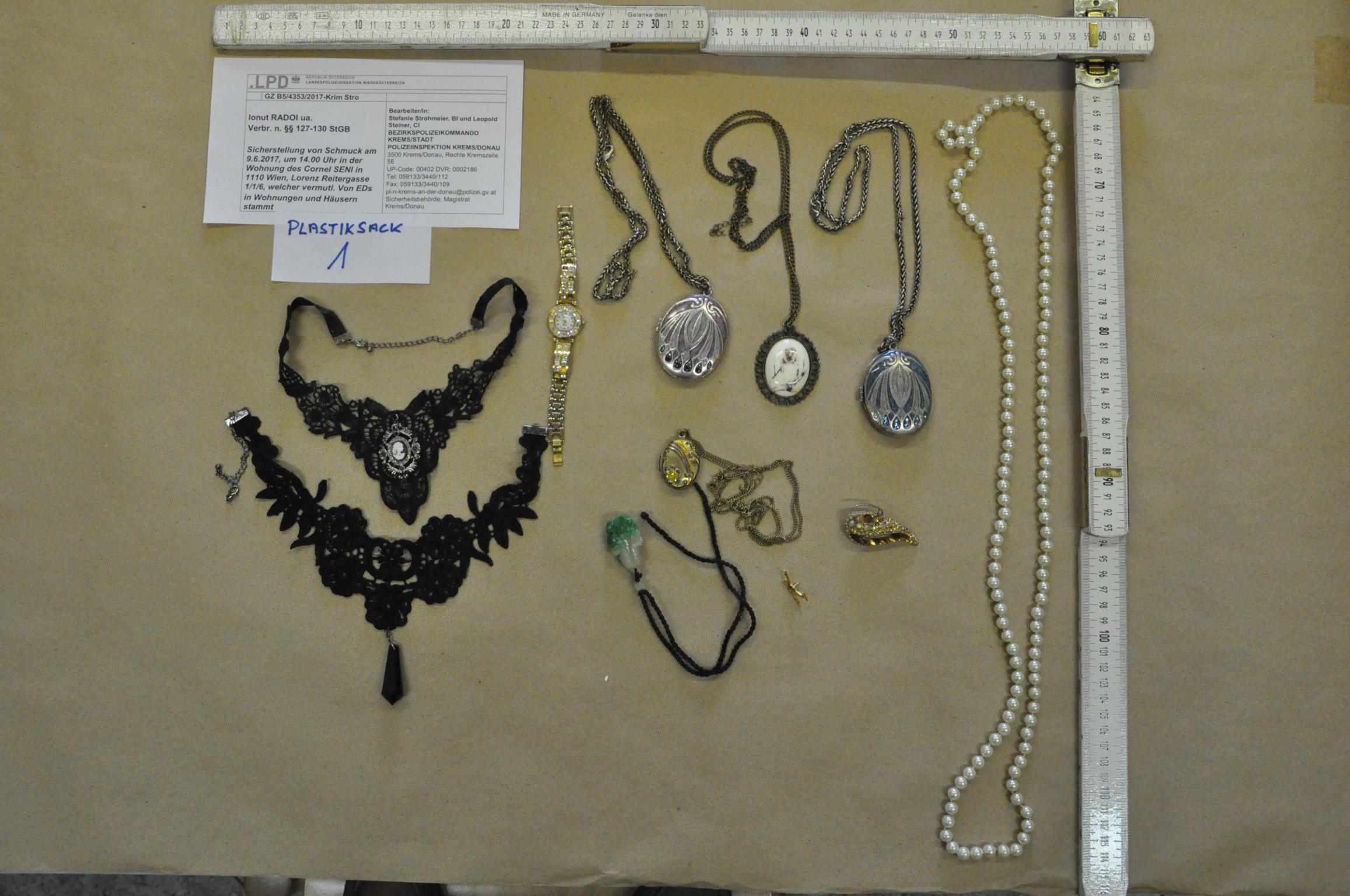 Sichergestellte Gegenstände Zurück zu: Startseite Fahndung Sichergestellte Gegenstände Sichergestellte Schmuckstücke - Niederösterreich_1 BeschreibungHinweise erbeten an:PI Krems - Tel.: 059133-3440 Fall3331644 Termine Samstag, 21. März 2026 Wien Recruitingday on Tour Samstag, 28. März 2026 Wien Kinderpolizei Aufnahmen Fun4Kids 2026 Donnerstag, 23. April 2026 Tirol Hommage 2026 zu den Terminen