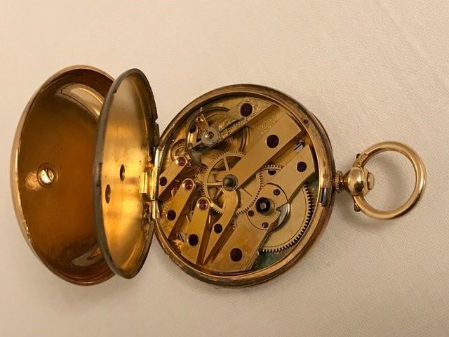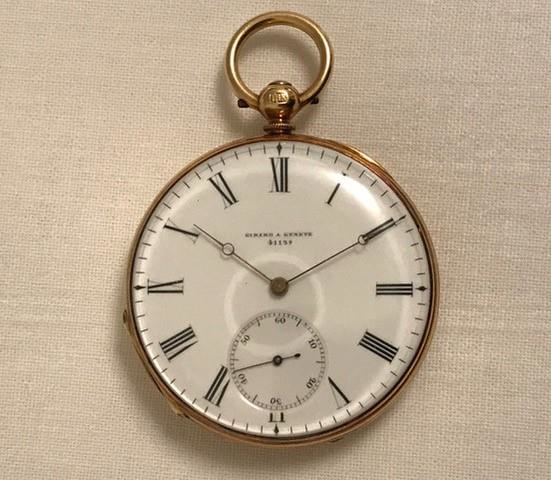 Taschenuhr, Girard Geneve 41139, 18 Karat Gold, Email-Zifferblatt weiß mit römischen Ziffern
